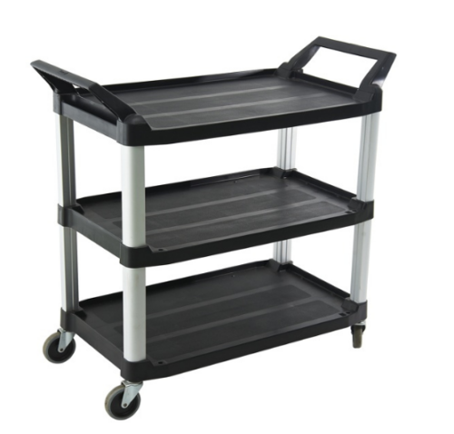 Ce chariot de service multifonction à 3 étagères, équipé de deux bacs latéraux amovibles pour le tri ou le transport de déchets, ustensiles ou fournitures. Ce chariot est idéal pour les professionnels de la restauration, de l’hôtellerie, du nettoyage ou de la logistique. Sa conception robuste en plastique ABS renforcé et ses montants en aluminium lui assurent une excellente résistance à la charge et à l’usage intensif. Les roues pivotantes à 360°, dont deux avec freins, garantissent une maniabilité optimale, même dans les espaces réduits.