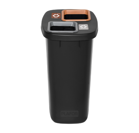 Poubelle de tri sélectif 90L à deux compartiments sélectifs, une solution écologique, ergonomique et ultra-résistante pour une gestion optimisée des déchets. Conçue en plastique recyclé haute qualité polypropylène, elle dispose de deux compartiments de 45L pour un tri efficace et intuitif. Son couvercle à ouverture centrale assure un usage hygiénique et sans contact, idéal pour les espaces de vie commune des bureaux, ateliers, usines, espaces publics. Grâce à ses arceaux métalliques, le sac reste parfaitement maintenu sans débordement, garantissant propreté et praticité. Avec son design contemporain et robuste, elle allie esthétique, durabilité et performance environnementale.