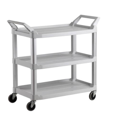Ce chariot de service multifonction professionnel à 3 niveaux, d’une dimension de 103 x 51 x 96 cm, est équipé de deux bacs latéraux amovibles pratiques pour le tri, les déchets ou le transport de petits objets. Conçu en plastique ABS robuste et monté sur des colonnes en aluminium anodisé, il assure solidité et légèreté. Ses étagères à rebords permettent un transport sécurisé sans risque de chute. Les 4 roues pivotantes, dont deux avec frein, garantissent une excellente mobilité sur tous types de sols. Les poignées ergonomiques à chaque extrémité offrent une prise en main confortable. Idéal pour les environnements exigeants : hôtellerie, restauration, entretien, milieu médical ou logistique. Facile à nettoyer, stable, maniable et polyvalent.