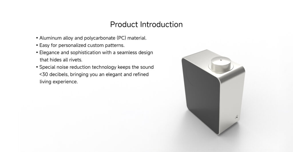 Ce diffuseur d’huile essentielle smart professionnel fonctionne via une technologie de nébulisation sèche, sans chaleur ni eau, garantissant une préservation optimale des propriétés olfactives. Il peut être installé au mur ou posé sur un meuble, et se connecte facilement à un système de ventilation (HVAC) pour une diffusion centralisée dans tout le local. Sa consommation optimisée (≈ 1,7 g/h) et son fonctionnement silencieux (≤ 42 dB) en font un appareil idéal pour un usage professionnel quotidien.
